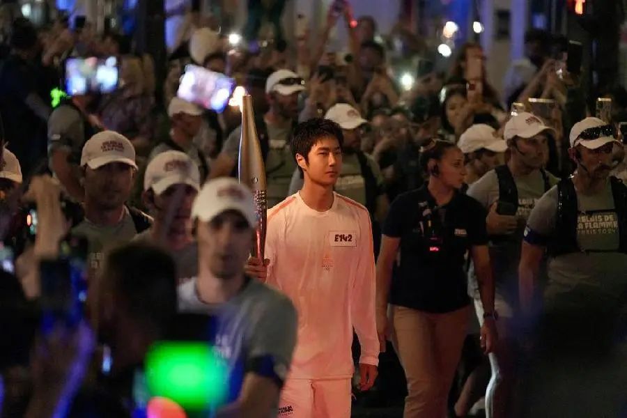 巴黎当地时间7月14日22时49分(北京时间15日4时49分),青年演员王一博正式参与巴黎奥运会火炬传递,现场吸引了大量中国游客和观众。